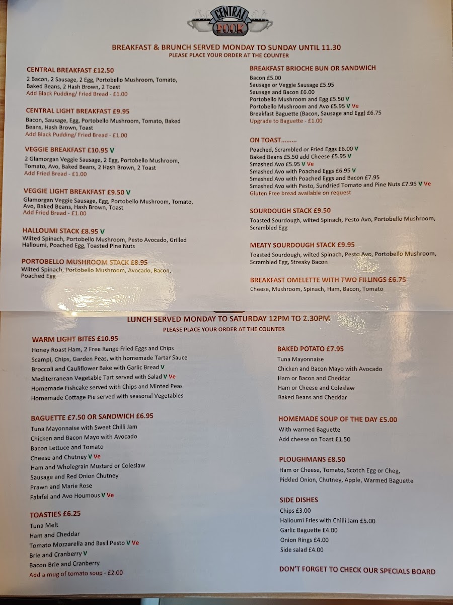 Welcome to Central Pook, a cozy café nestled in Northwick Road, Pilning, Bristol. This delightful spot is perfect for breakfast and brunch enthusiasts, boasting an enticing menu that caters to all tastes. Start your day with their indulgent Central Big Breakfast for £12.50 or opt for a lighter option with the Central Light Breakfast at £9.95. Vegetarian patrons will adore the Veggie Big Breakfast or the Halloumi Stack, both showcasing fresh, quality ingredients.